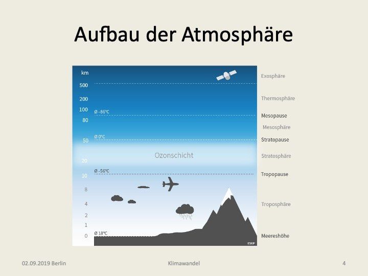 - Troposphäre (0-10 km),