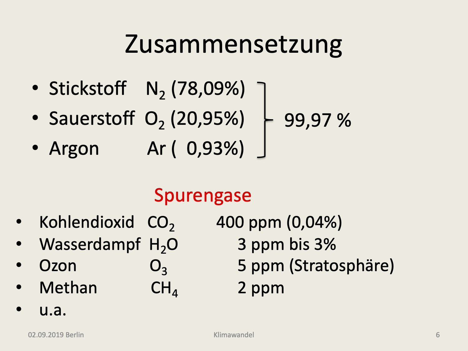 Es verbleiben daher nur die Spurengase, die trotz ihrer sehr geringen Konzentrationen, von großer klimatischer Bedeutung sind. Einige dieser Gase sind in der Abb. 3